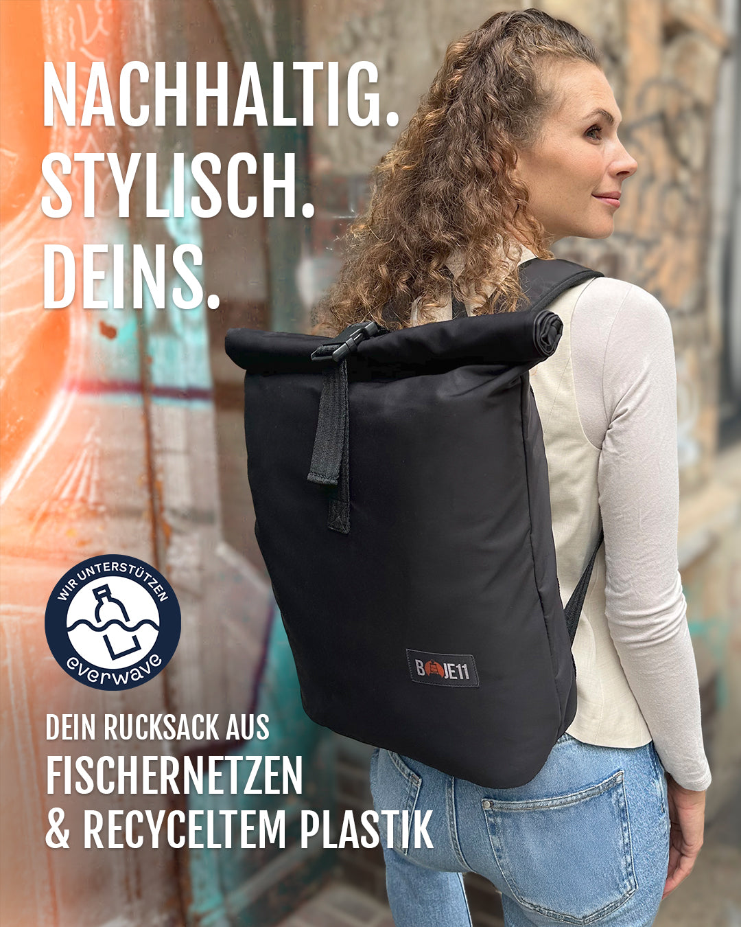 Rucksäcke sind praktische Alltagsbegleiter und sogenannte Rolltops sowieso. Sie lassen sich komfortabel tragen, da das Gewicht auf beide Schultern verteilt wird und sich die Füllmenge sehr flexibel gestalten lässt. Wir haben es uns zum Ziel gesetzt, unseren Kund*innen nicht nur stylische Rucksäcke, sondern auch nachhaltige Lösungen anzubieten. Entstanden ist ein Rolltop aus Plastik bzw. Plastikmüll, der zum allergrößten Teil aus recyceltem Material hergestellt wird und durch die lokale EU-Produktion faire Arbeitsbedingungen und eine hochwertige Qualität verspricht.