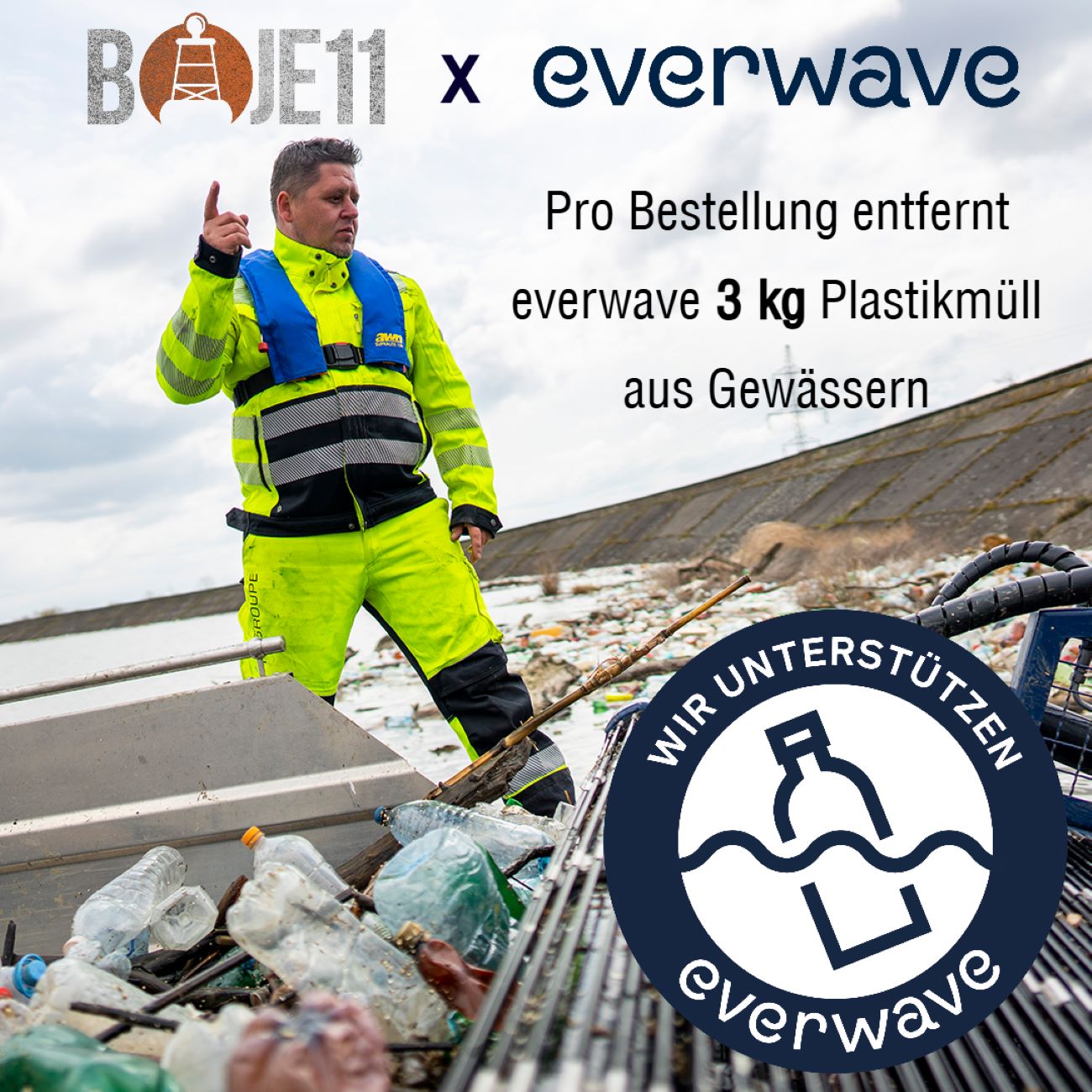 will das verhindern und entsorgt pro Bestellung 3 kg Plastikmüll aus Flüssen, bevor das Plastik die Meere erreicht. Da auch über 2 kg recyceltes Plastik in jedem Rucksack stecken, entfernt jeder BOJE11-Rucksack insgesamt ca. 5 kg Plastik aus der Umwelt.