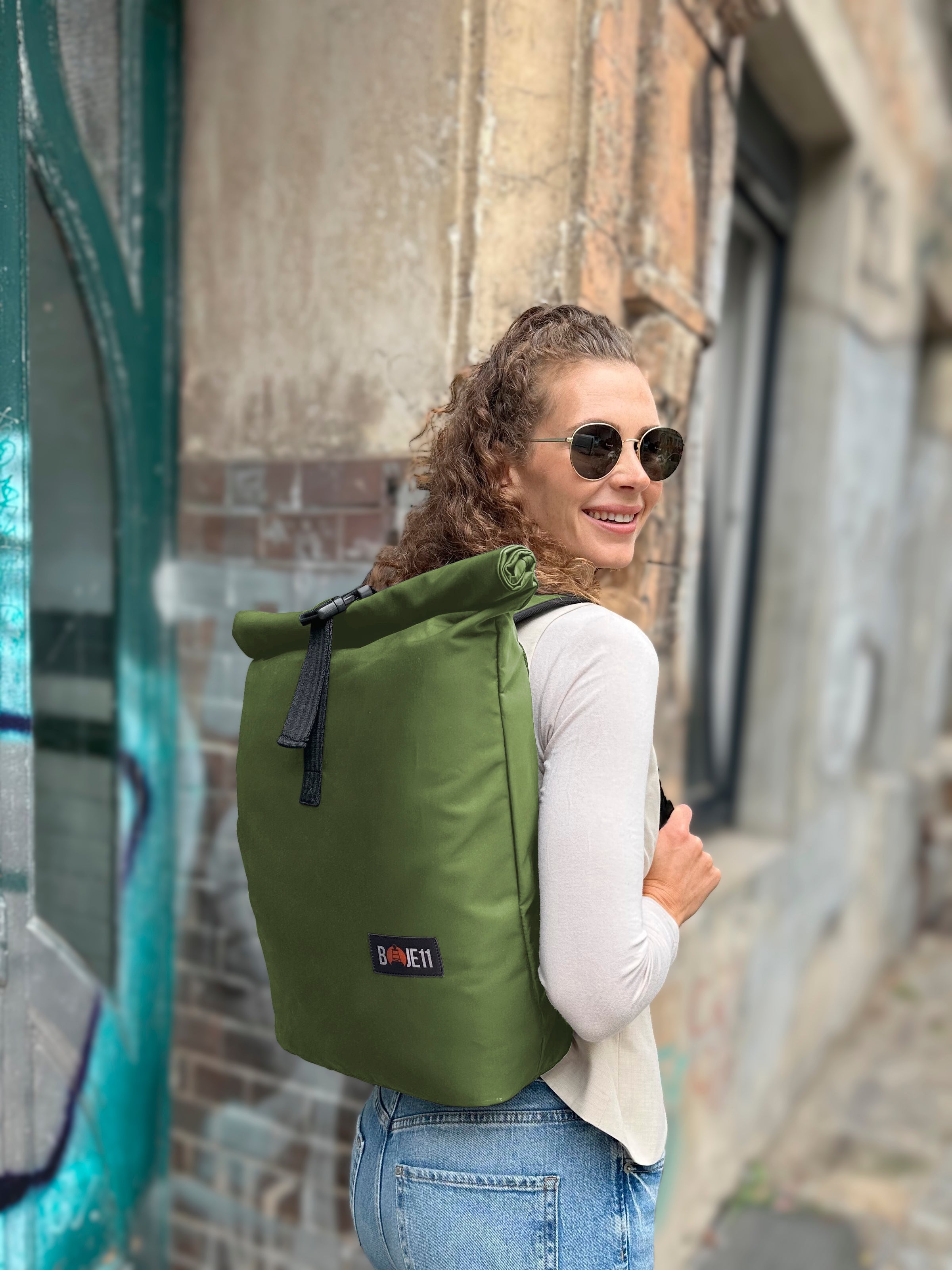Rucksäcke sind praktische Alltagsbegleiter und sogenannte Rolltops sowieso. Sie lassen sich komfortabel tragen, da das Gewicht auf beide Schultern verteilt wird und sich die Füllmenge sehr flexibel gestalten lässt. Wir haben es uns zum Ziel gesetzt, unseren Kund*innen nicht nur stylische Rucksäcke, sondern auch nachhaltige Lösungen anzubieten. Entstanden ist ein Rolltop aus Plastik bzw. Plastikmüll, der zum allergrößten Teil aus recyceltem Material hergestellt wird und durch die lokale EU-Produktion faire Arbeitsbedingungen und eine hochwertige Qualität verspricht.